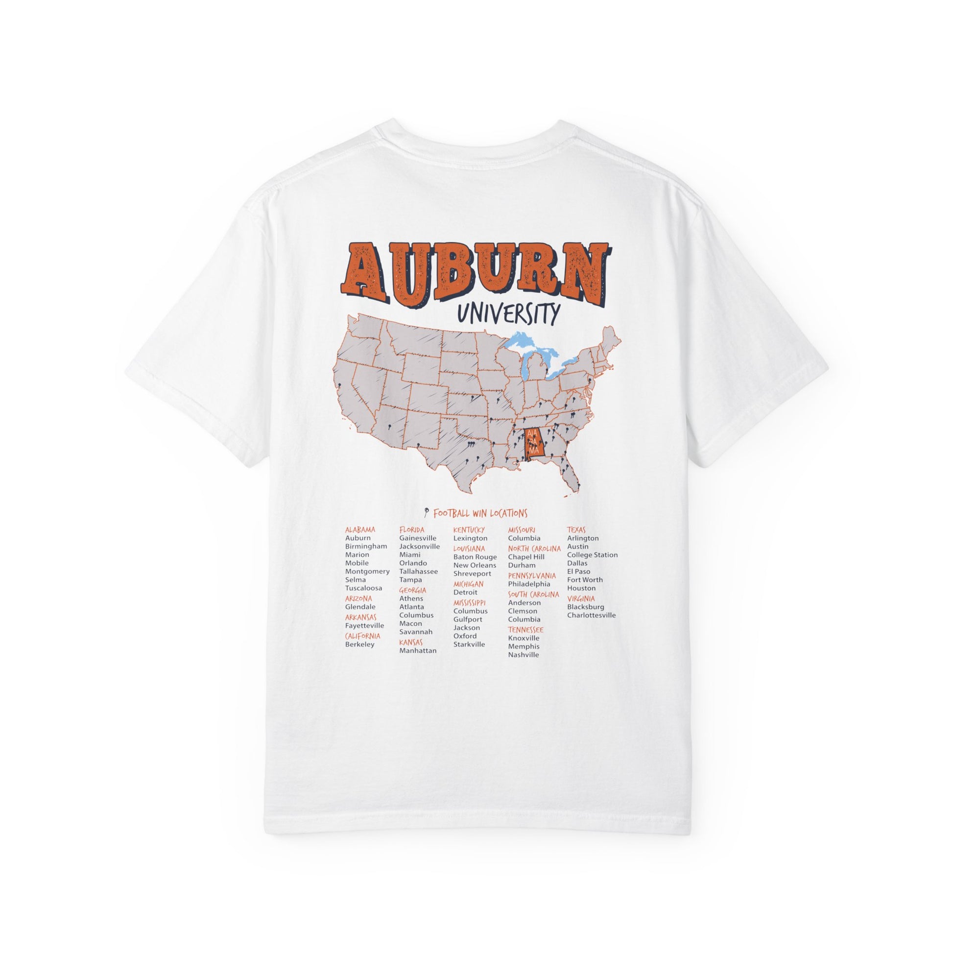 Our Victory Map T-Shirts bring generations of triumph to life, featuring a detailed map of every city where your team has won—from legendary rivalries to unforgettable bowl games.