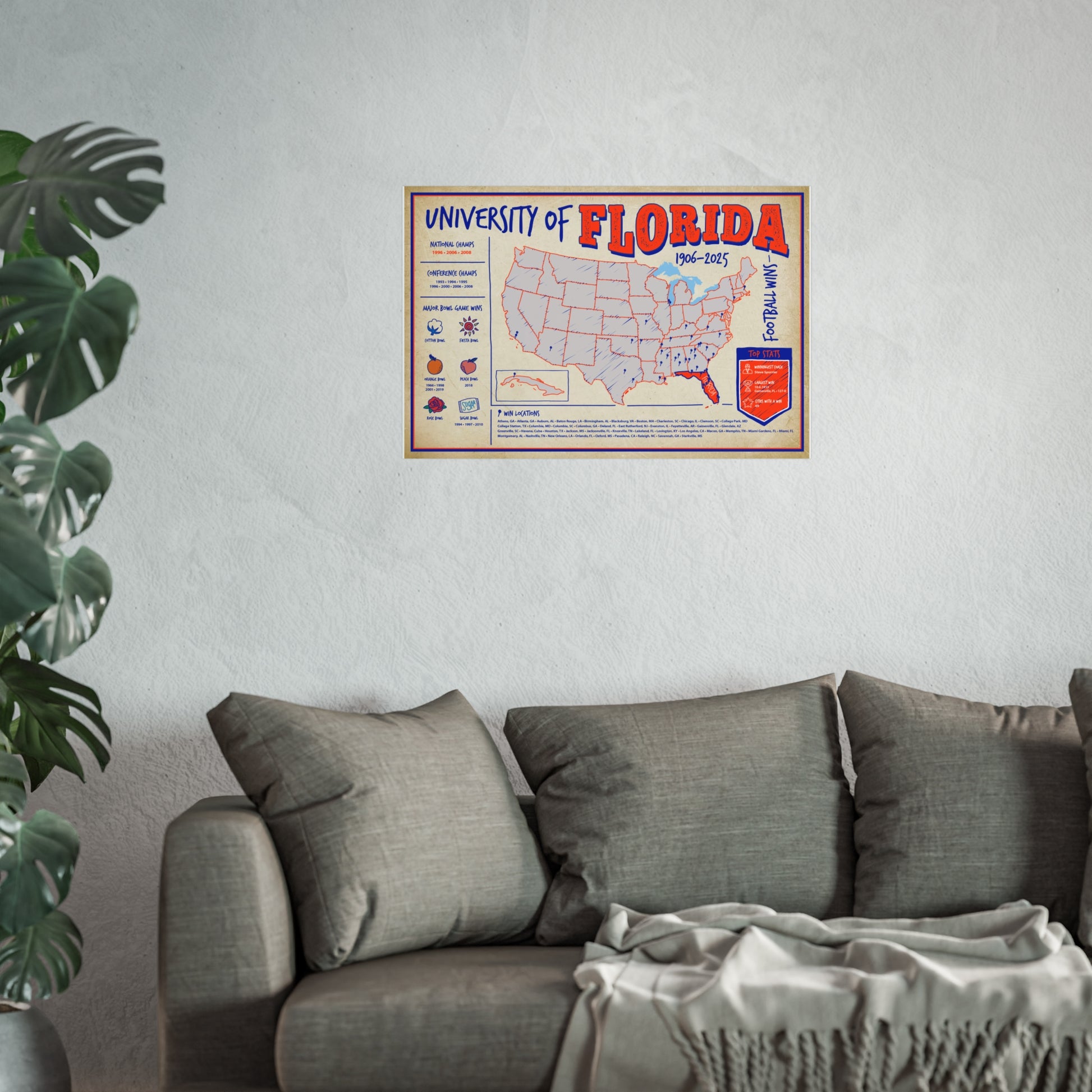 This map of Gator football dominance makes an unforgettable gift for holidays, birthdays, or graduation.