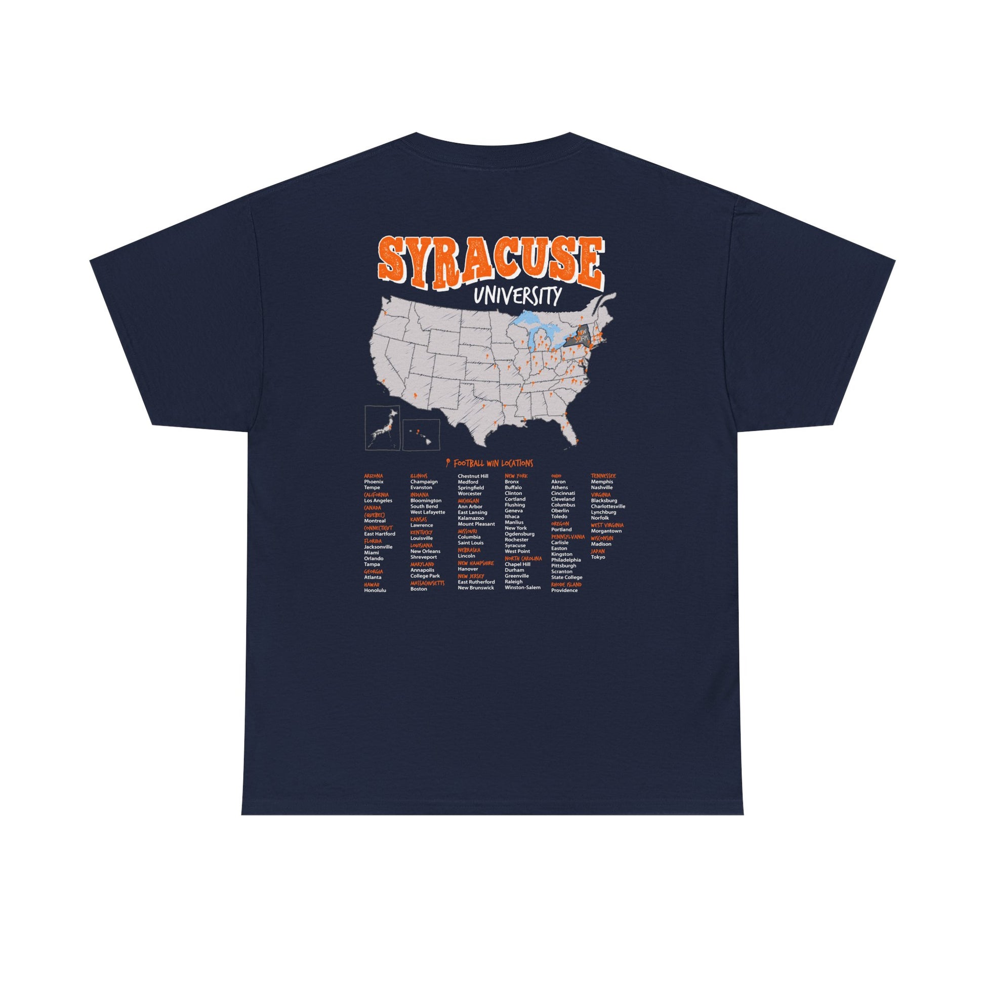 Our Victory Map T-Shirts bring generations of triumph to life, featuring a detailed map of every city where your team has won—from legendary rivalries to unforgettable bowl games.