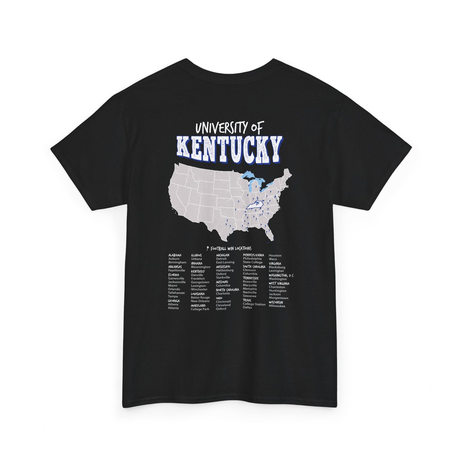 Our Victory Map T-Shirts bring generations of triumph to life, featuring a detailed map of every city where your team has won—from legendary rivalries to unforgettable bowl games.