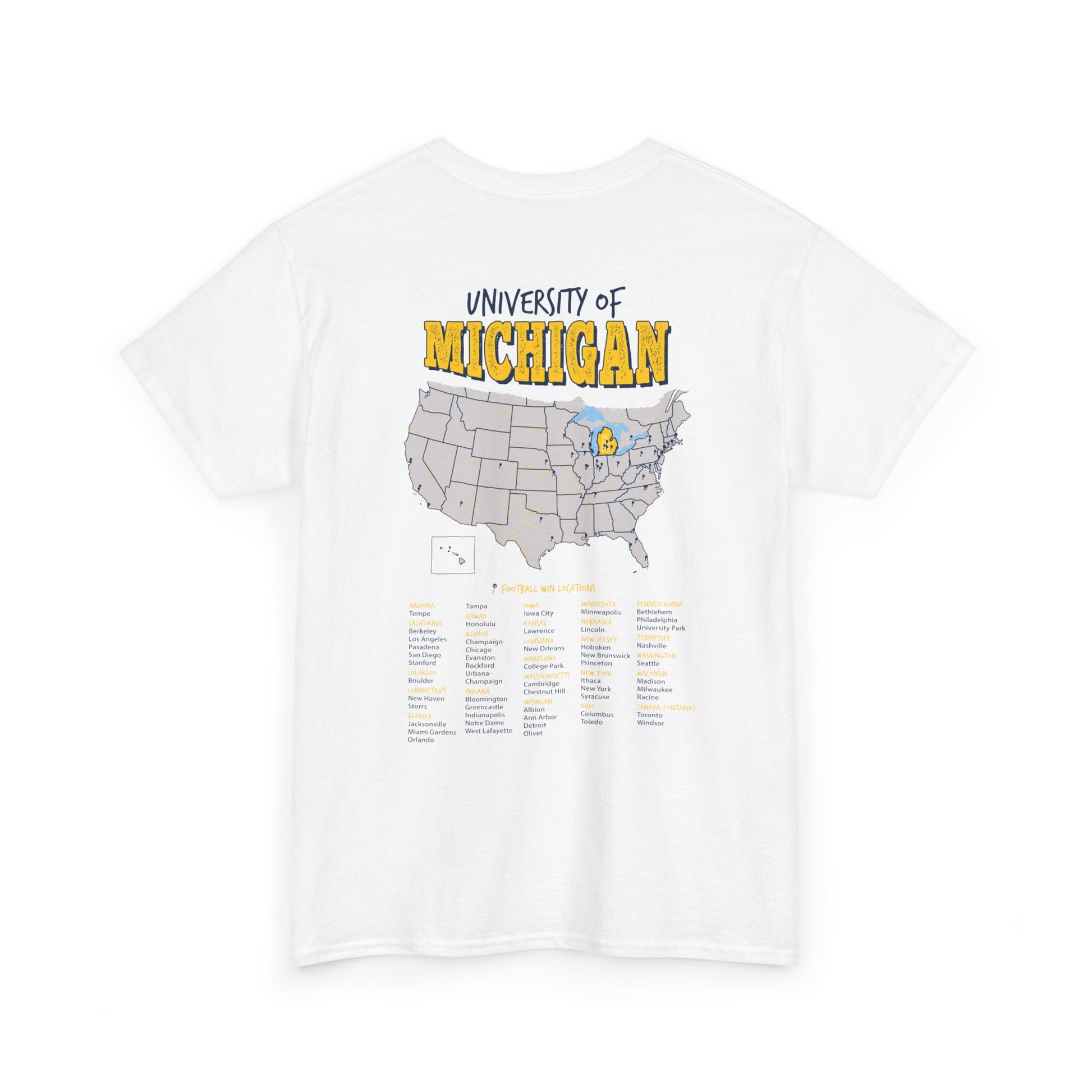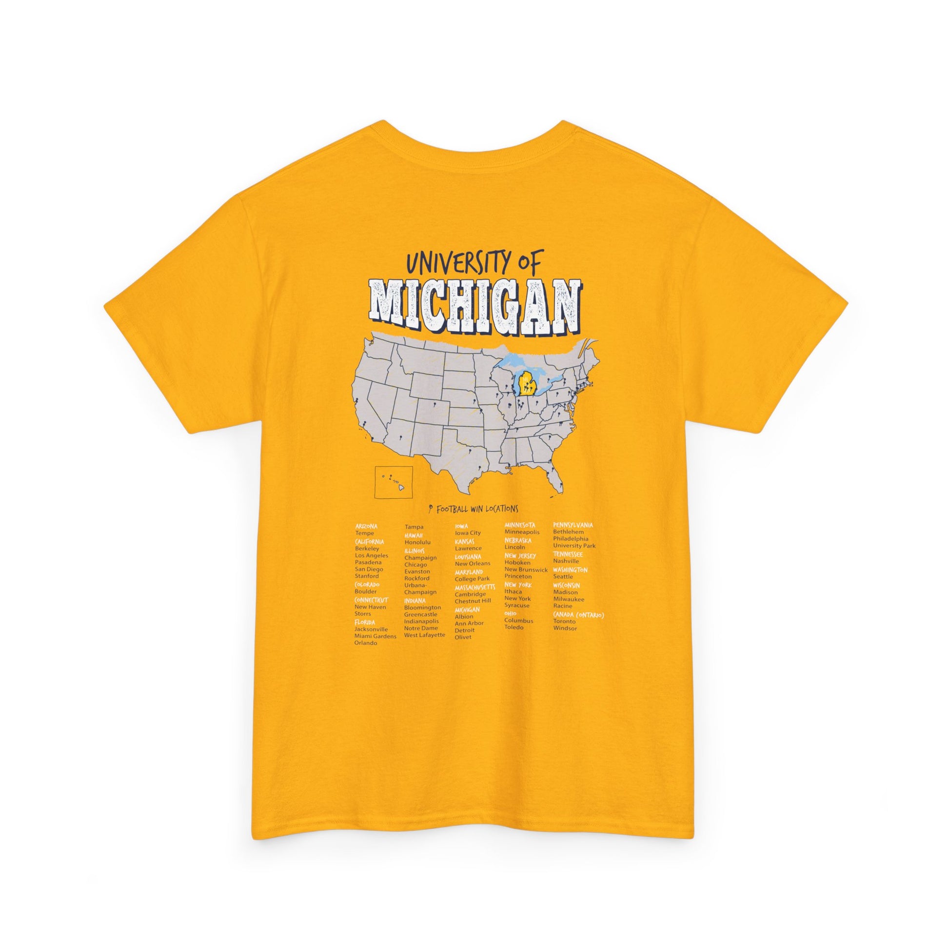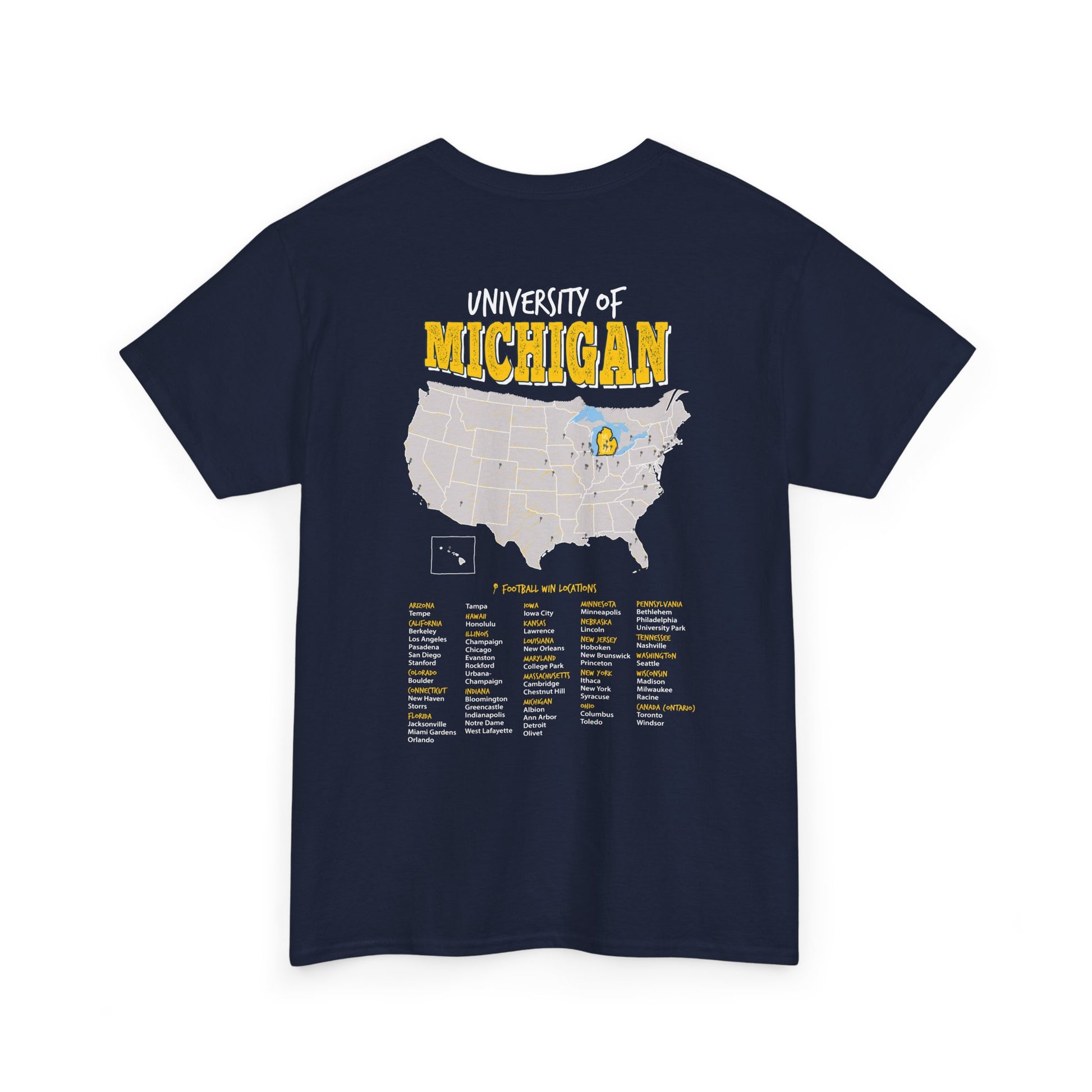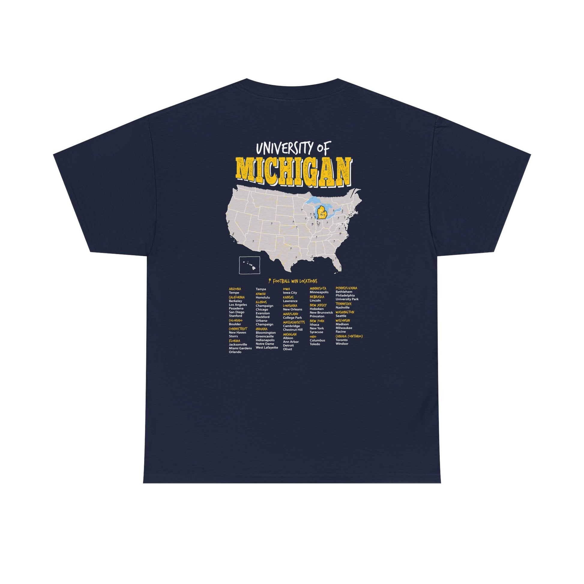 Our Victory Map T-Shirts bring generations of triumph to life, featuring a detailed map of every city where your team has won—from legendary rivalries to unforgettable bowl games.